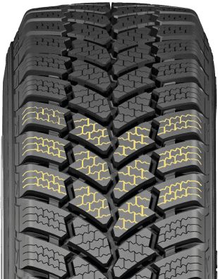 Специально разработанный состав резины сохраняет эластичность при экстремально низких температурах, устойчив к растрескиванию и повышенному истиранию. Это увеличивает общий срок службы покрышки даже при перегрузках.